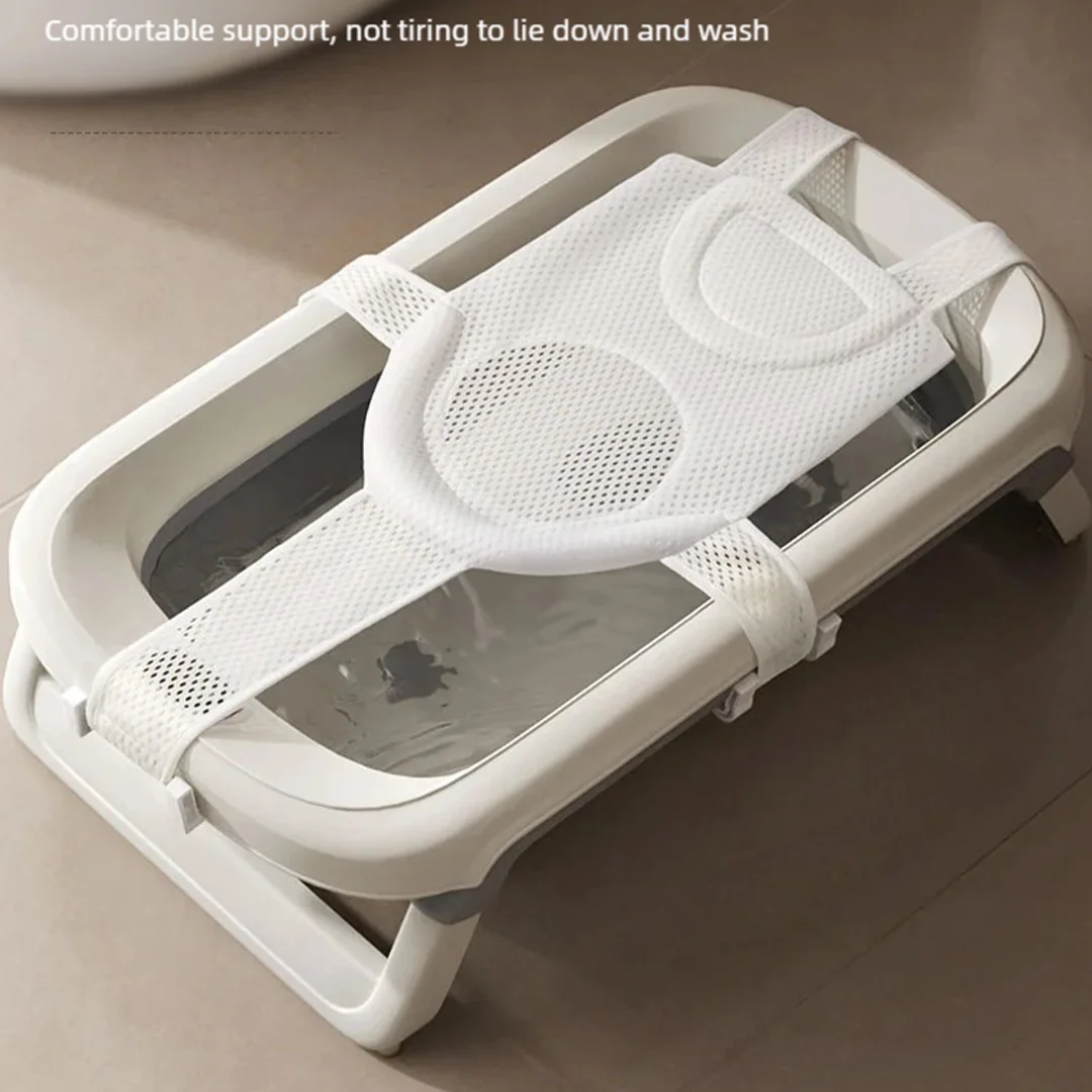 The Baby Bath Net Cushion provides safe and gentle support for newborns during bath time. Designed with a cross-shaped and anti-slip structure, it cradles your baby securely, preventing slipping while keeping their head comfortably elevated above the water. The adjustable straps allow it to fit most standard baby bathtubs, ensuring a stable and firm hold. Made from soft, breathable mesh material, it dries quickly and remains gentle against delicate skin. The cushion offers a cozy and relaxed bathing position, helping babies feel calm and comfortable. It also allows parents to bathe their baby using both hands, making bath time easier and safer. Lightweight and easy to fold, it is convenient for travel and storage. This bath support is ideal for newborns and small infants who need extra head and body support during their early months. The Baby Bath Net Cushion enhances parent confidence and provides a smooth, enjoyable bath routine every