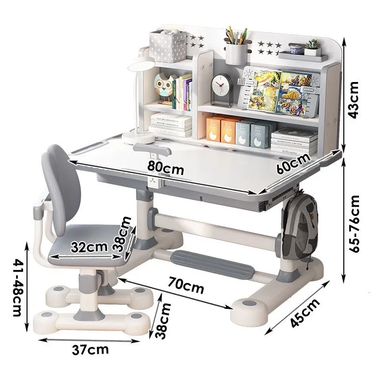 The Adjustable Student Desk Set is designed to provide comfort, support, and functionality for children’s daily learning activities. Featuring a height-adjustable design, it easily adapts to your child’s growth, ensuring long-term usability and proper posture. The ergonomic structure helps reduce strain on the neck, back, and shoulders during reading, writing, and studying. Crafted with a sturdy frame, this desk and chair set offers excellent stability and durability for everyday use. The spacious desktop provides ample room for books, notebooks, laptops, and stationery. Smooth edges and a child-safe design enhance safety and comfort during extended study sessions. The matching chair supports healthy sitting habits and encourages better focus. Its modern, compact design fits perfectly in bedrooms, study rooms, or learning corners. Easy to assemble and maintain, it is ideal for busy families. The adjustable features promote independence and responsibility in children. Suitable for homework, online learning, drawing, and crafts, this set meets a wide range of daily needs. A practical and stylish solution that supports healthy posture, concentration, and academic growth for students of all ages.